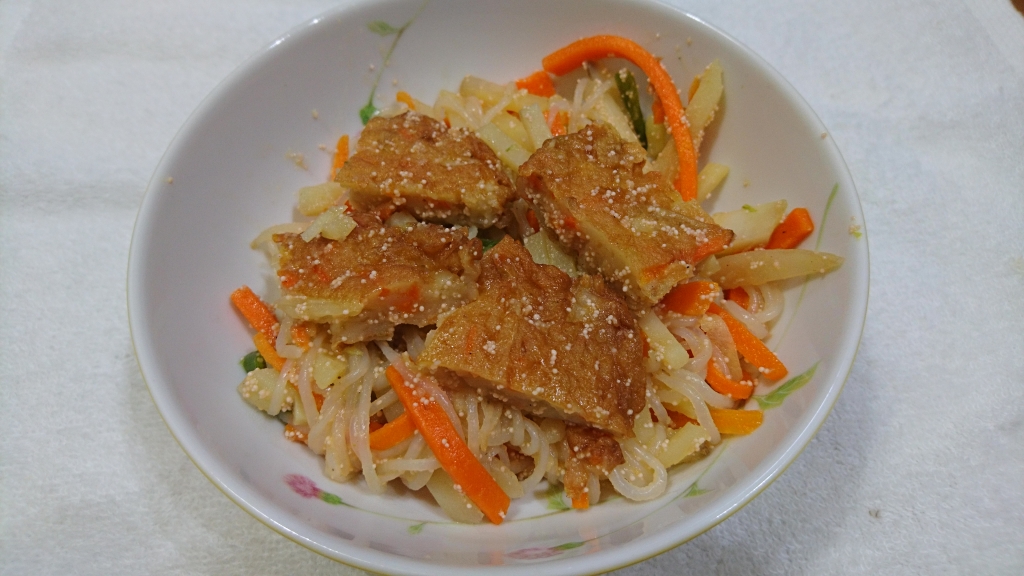 もう一つの料理で、だし汁が大量に余りました。捨てるのは勿体ないので味噌汁にしました。味は普通。味噌以外にも調味料入れればいいのにと思います。