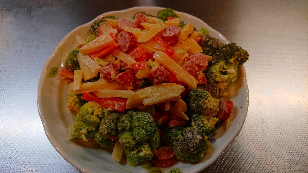 レンジで簡単!温野菜とソーセージのサラダ