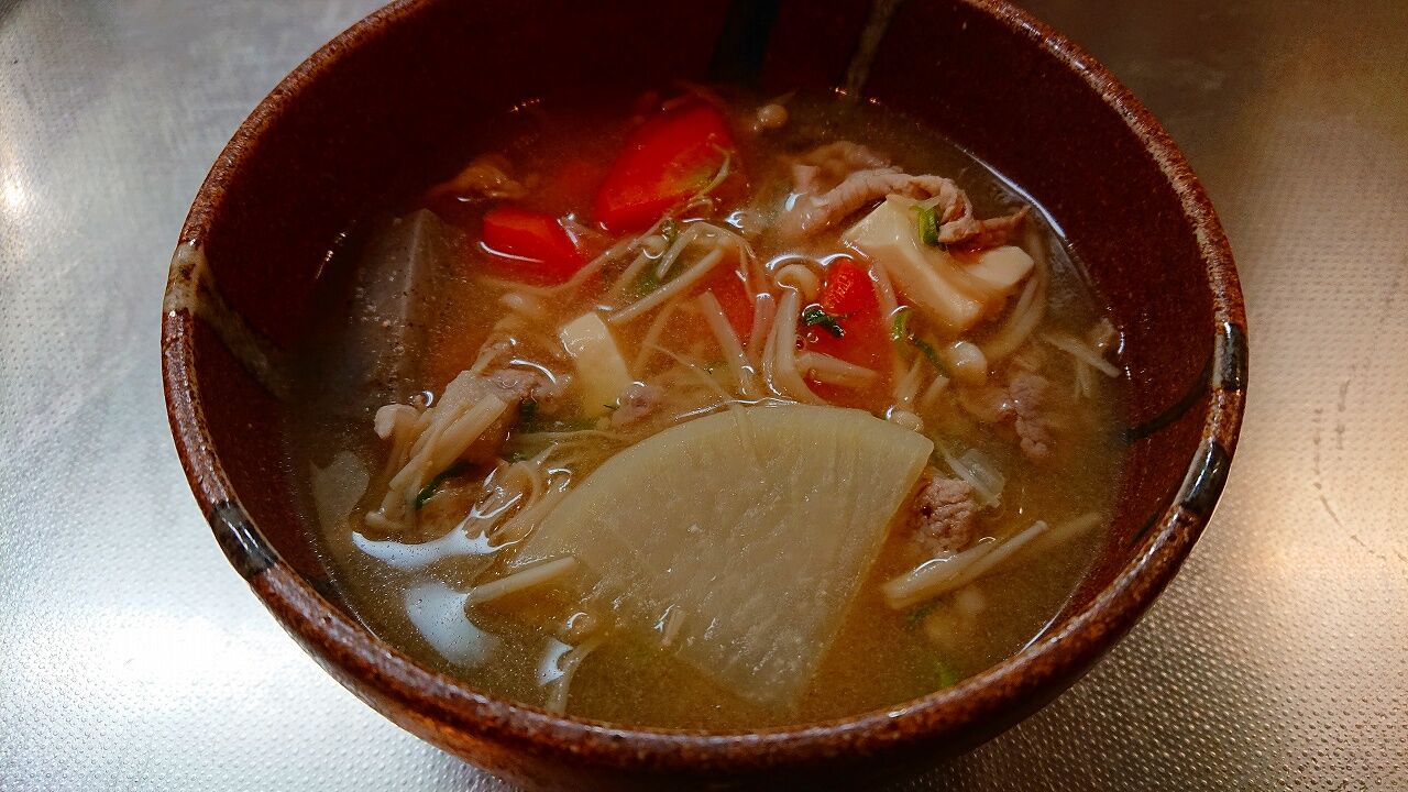 美味しい豚汁が出来ました。姉は明日の方が美味しくなると言いました。生姜が入っていないのでまろやかです。