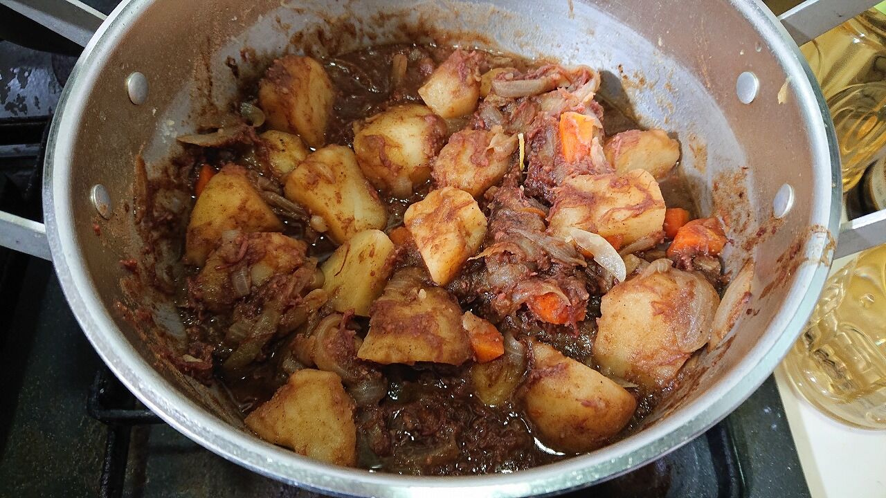③酒も加え、蓋をずらして15分野菜が柔らかくなるまで煮る