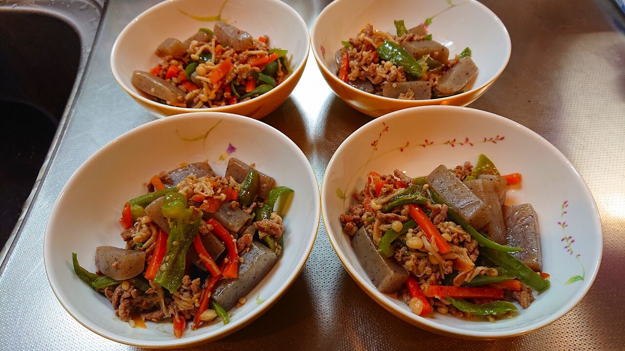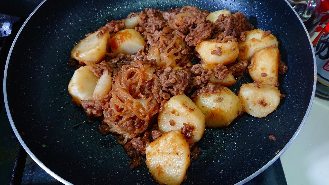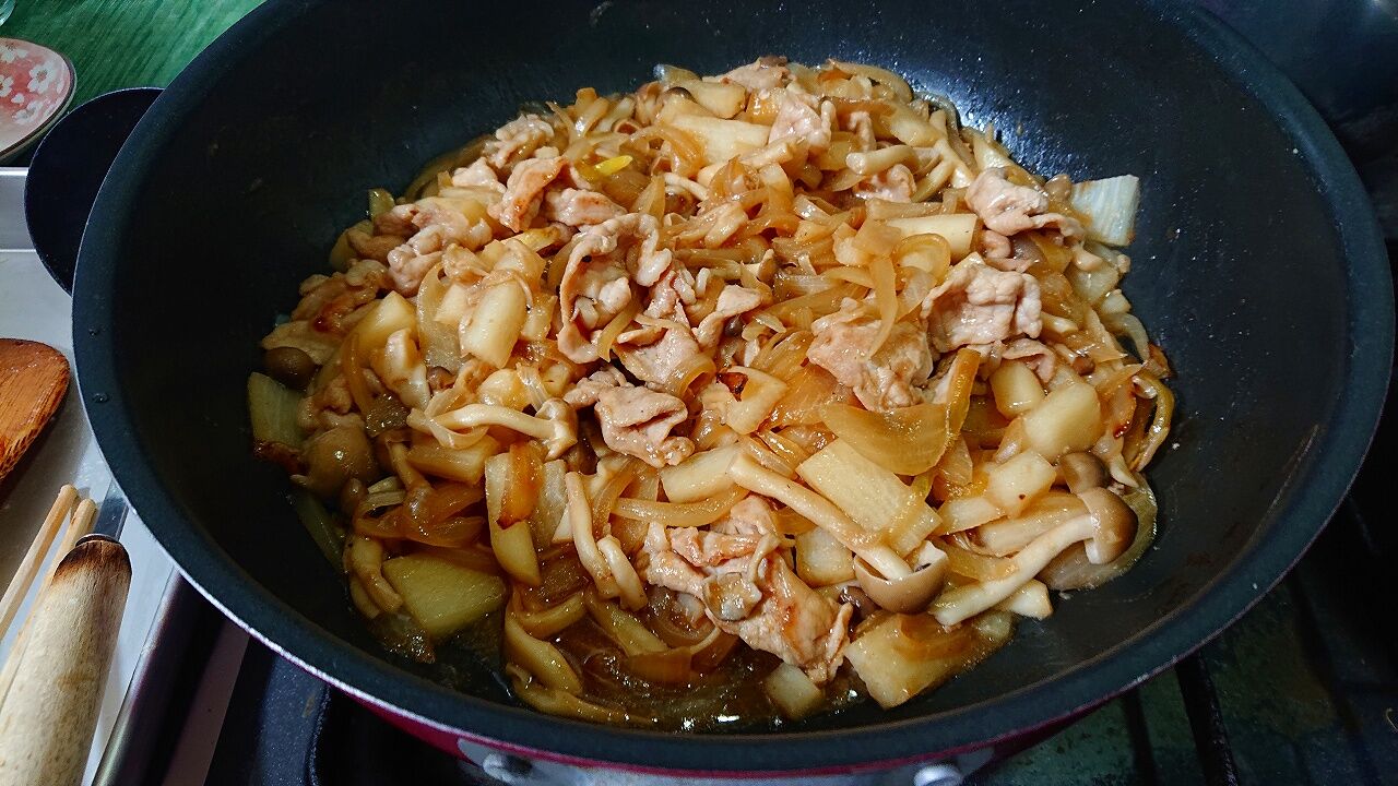 ⑨しめじと長芋を入れて、☆の調味料で炒める
