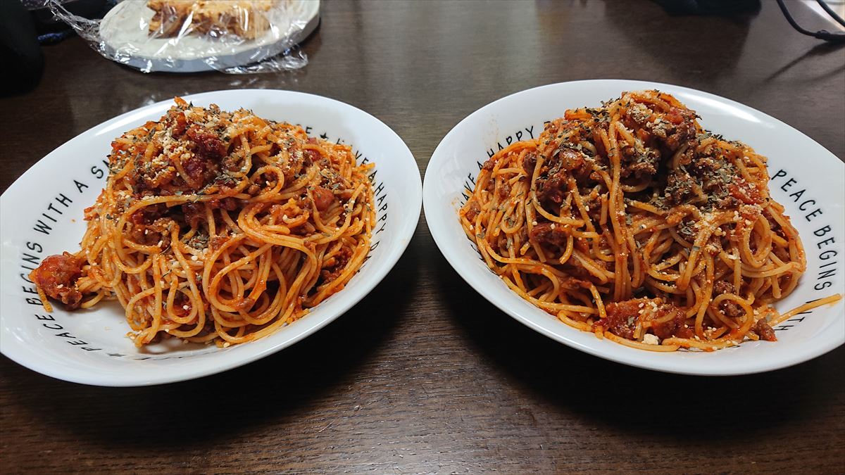 ②フライパンに油とにんにくチューブを入れ、香りが出たてきたら肉を炒める