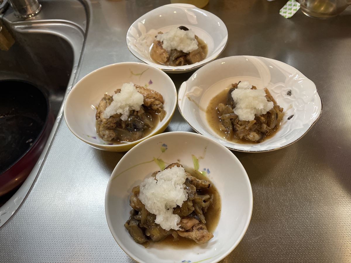 ④煮ている間に大根をおろします。③が10分経ったら皿に盛り大根をおろしを上に乗せます。