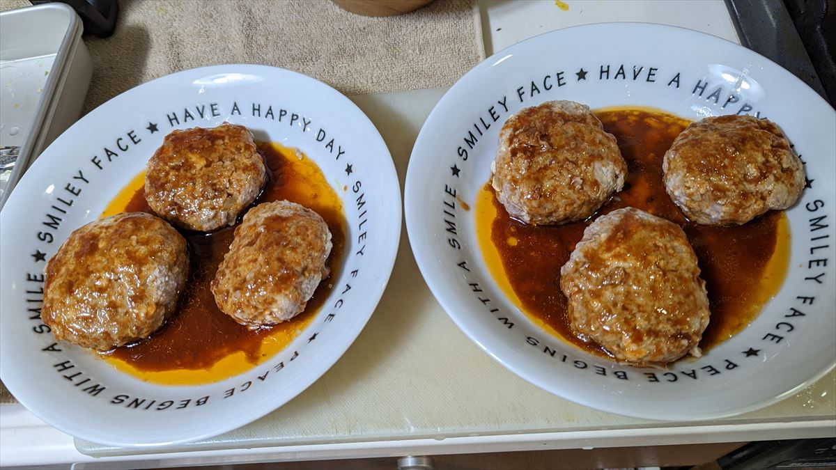 ⑦ハンバーグにソースをかけて完成