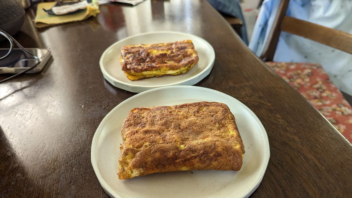 ⑤油をフライパンに敷き、弱火で5分焼く。裏返して、蓋をして8分弱火で蒸し焼き。火が通ったら皿に出す