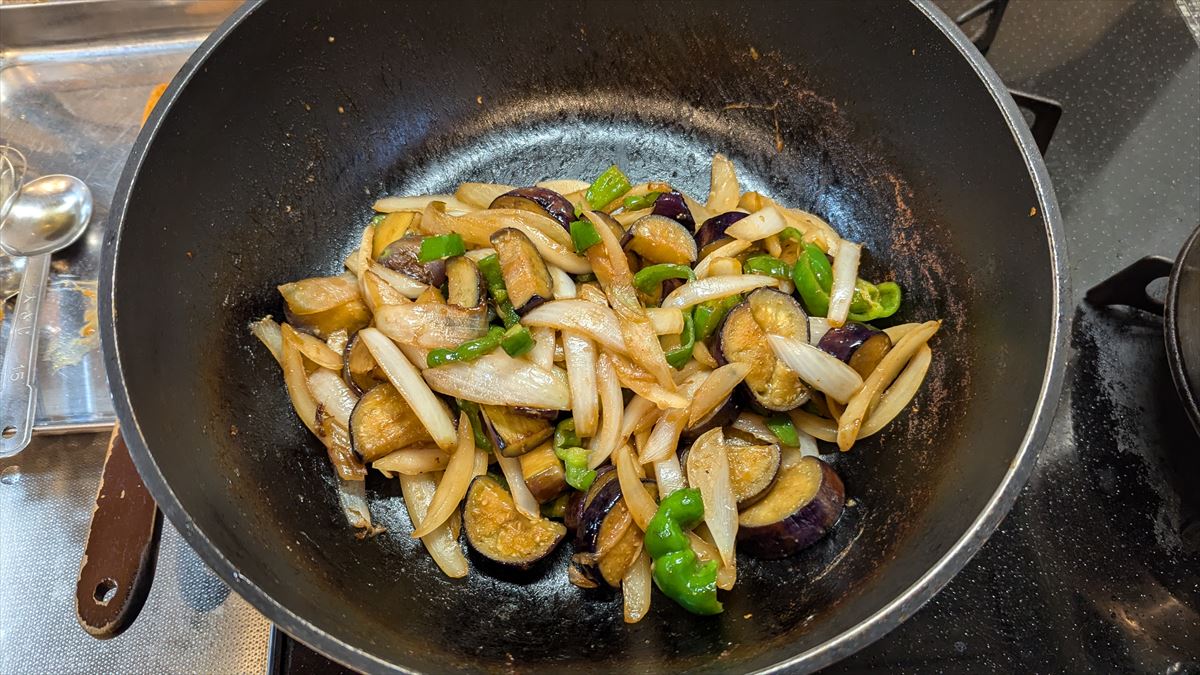 なす・ピーマン・玉ねぎの甘味噌炒め♪