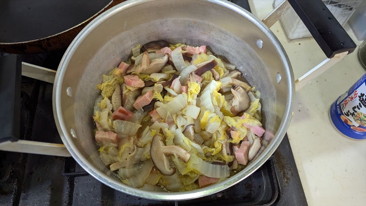 2024年11月28日 白菜とお肉の煮物~(3度目) 材料ブロックベーコン 160g椎茸 小1パック白菜 1/4塩胡椒 適量コンソメ顆粒 大2作り方①白菜はザク切り②椎茸は細切り③ブロックベーコンは短冊切り④鍋に材料を白菜、椎茸、ブロックベーコンを加え、コンソメ、塩胡椒を加え弱火で20分煮込む評価4コンソメの効いた美味しい料理です。簡単で良いです。