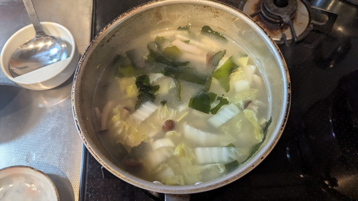 2024年11月22日 白菜としめじの定番味噌汁 材料白菜 80gしめじ 小1袋乾燥わかめ 小2出汁 お椀5杯味噌 大2作り方①白菜は食べやすい大きさに切り水洗い、しめじはバラす②鍋に出しとしめじを入れ中火にかけ、湧いたら白菜、わかめを加え火が通るまで5分煮る。火を止めて味噌を溶き入れる評価3簡単だけど美味しい料理です。味噌汁はダイエットに良いらしいです。