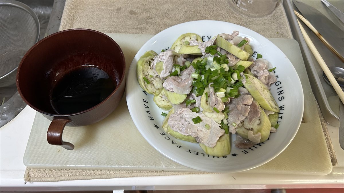 ③肉がある程度焼けてから、肉から出た脂の中ににんにくチューブを投入、香りを出す