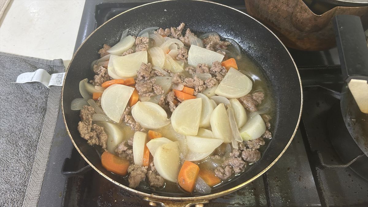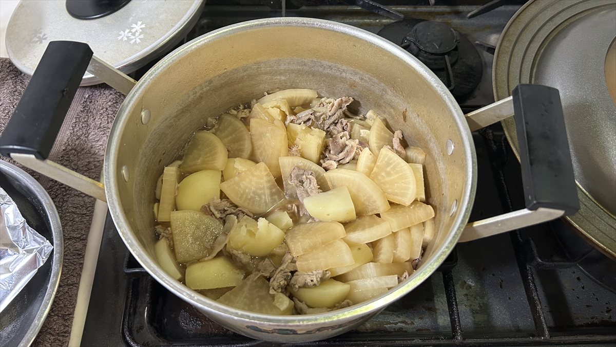 ④計30分たち大根とじゃがいもが柔らかくなったことを確認してそのまま冷やして味を染み込ませる。食べる時に再び温める