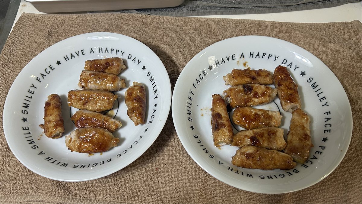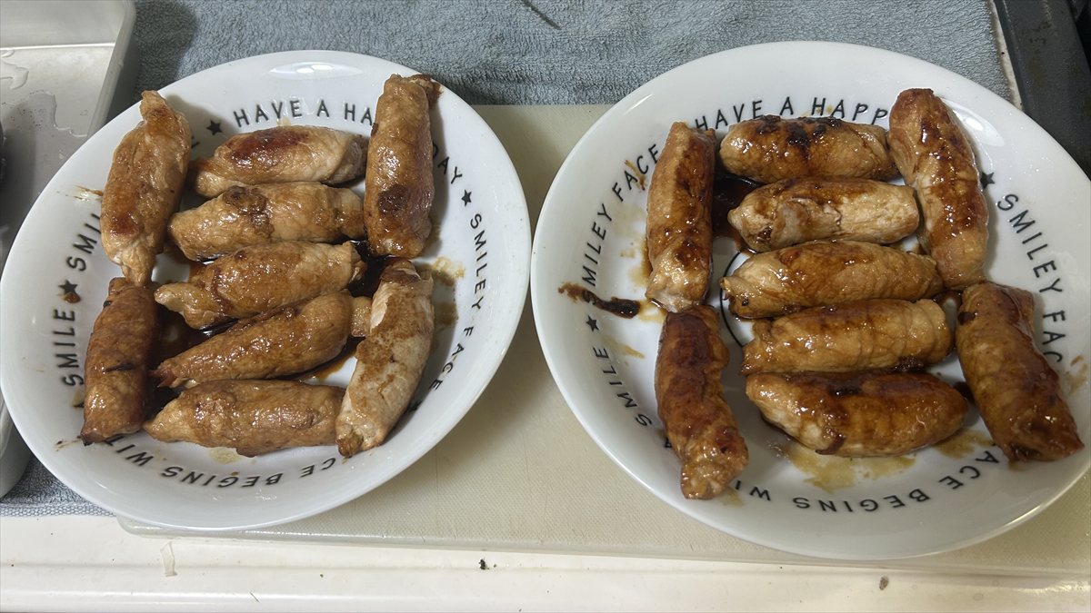 ③鶏もも肉を食べやすい大きさに切り、フライパンで焼き色がつくまで焼いて、一旦取り出す