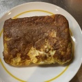 ④両面がきつね色に焼き上がったら、皿に上に移す。皿の上の麺を円形に整える