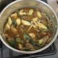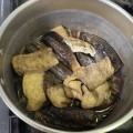 ③出汁、調味料を入れて蓋をし圧力鍋を火にかけます