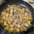 ①じゃがいもは大きめに乱切り、玉ねぎはスライス、人参は小さく乱切り、しめじはバラす
