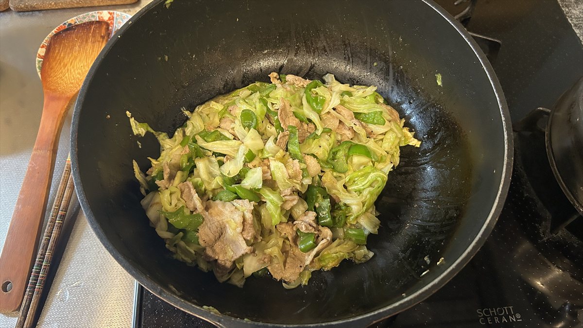 2025年07月06日 豚こま切れ肉とキャベツとピーマンの回鍋肉(3度目) 材料豚小間切れ肉 200gキャベツ 1/2個ピーマン 5個味噌だれ味噌 大1砂糖 大1/2酒 大1醤油 大1作り方①豚こま切れ肉は一口大に、ピーマンは縦半分に切り種とヘタを取り、細切り、キャベツはざく切り、タレを作る②フライパンを熱してごま油を入れて馴染ませて豚小間切れ肉を入れて軽く塩コショウをして、ピーマン、キャベツを入れて炒める③味噌だれを入れて炒め合わせて出来上がり評価3.5時短でできる美味しい料理です。時間の無いときサッと作るに適してます。 「評価3.5」カテゴリの最新記事 < 前の記事次の記事 > コメント コメントフォーム 名前 コメント 評価する リセット リセット 顔 星 投稿する 情報を記憶