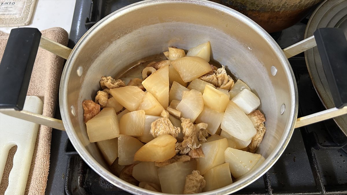 2025年09月17日 大根と油揚げと竹輪の煮物(3度目) 材料大根 10cm油揚げ 2枚竹輪 3本みりん 大2めんつゆ 大4水 120cc作り方①大根は、米の研ぎ汁で5分下茹で。②油揚げは短冊切り、竹輪は縦割り4等分にし三等分に切る③鍋に入れて、みりん、めんつゆ、水120ccを入れて落し蓋をし20分煮る評価4久しぶりに作りました。この料理が好きな姉にやっぱり好きと言われました。 「評価4」カテゴリの最新記事 < 前の記事次の記事 > コメント コメントフォーム 名前 コメント 評価する リセット リセット 顔 星 投稿する 情報を記憶