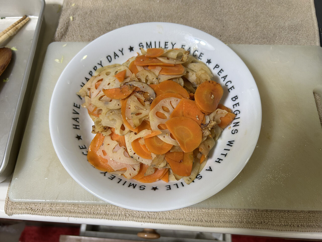 2025年11月05日 れんこんのきんぴら 材料れんこん 2個人参 1本ごま油 大1醤油 小4みりん 小4白ごま 適宜作り方①れんこんと人参の皮を剥き、スライサーで輪切り、れんこんは水にさらしておき、水気を切る②フライパンにごま油を熱し、①を炒める③火が通ったら、調味料を加えなじませ完成評価3.5簡単だけど美味しい料理です。スライサーで輪切りにすることで食べやすいです。 「評価3.5」カテゴリの最新記事 < 前の記事次の記事 > コメント コメントフォーム 名前 コメント 評価する リセット リセット 顔 星 投稿する 情報を記憶
